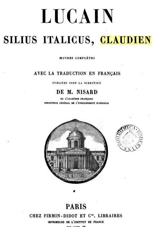 PANÉGYRIQUE SUR LE CONSULAT DE PROBINUS ET D'OLYBRE O toi qui, dans les rênes enflammées de ton char, embrasses l'univers, et roules, infatigable dans ta marche, les siècles renaissants, Soleil, répands sur ce jour un plus brillant éclat : que tes coursiers, fiers de leur longue crinière, redressent le timon, et qu'ils exhalent de leur bouche écumante des flammes de pourpre : que l'année, pour deux frères, renouvelle son cours, et que les mois de leur consulat s'empressent d'éclore. La famille d'Auchénius, tu la connais ; tu connais aussi les puissants Annius : souvent on t'a vu, sous leurs auspices, reprendre ta marche et marquer de leur nom ta nouvelle carrière. La Fortune, pour eux, ne balance pas ses faveurs incertaines ; mais, oubliant son inconstance, elle se fixe enfin, et, sur toute leur famille, promène également les honneurs. Il n'est point d'homme, issu de cette maison, qui n'ait pour père un consul. C'est par les faisceaux qu'ils comptent leurs aïeux ; toujours le temps rajeunit leur noblesse ; constant dans sa marche et fidèle à ses lois, le destin des ancêtres est celui des neveux. Rome en vain étale d'antiques statues ; en vain elle s'entoure d'illustres sénateurs : il n'est pas de héros qui ose se proclamer leur égal ; mais le premier rang reste aux Auchénius, et le second seul peut être disputé. Telle, dans les régions silencieuses du nord, la lune, reine superbe, efface les flambeaux de la nuit, lorsque , réfléchissant les rayons de son frère, elle brille, rivale audacieuse, de feux empruntés ; alors s'amortit l'éclat du Bootès ; alors l'ardeur du Lion s'éteint. L'Ourse indignée perce par intervalle les ombres dont la couvre le Chariot ; et le pâle Orion voit avec étonnement ses armes ternies et son bras désarmé. Lequel chanterai-je le premier ? Qui ne connaît pas les exploits du vieux Probinus ? ou qui peut ignorer les hautes vertus d'0lybre ? La gloire de Probus vit encore répandue au loin ; elle retentit à toutes les oreilles : gloire immense que ne tairont pas les siècles futurs, et que le passé ne couvrira pas du nuage de l'oubli. La Renommée porte son nom par-delà les mers et leurs lointains rivages, par-delà l'Atlas et ses solitudes : elle l'apprend aux peuples, s'il en est, que nourrissent au milieu des frimas les marais Méotides, ou qui, rapprochés de la zone brûlante, boivent à leur source les eaux du Nil. Il a, par ses vertus, enchaîné la Fortune ; le souffle de la prospérité n'a jamais enflé son âme : que dis-je ? Entourée d'un torrent de délices, son âme savait opposer à la mollesse une inaltérable austérité. Loin de cacher ses richesses dans les entrailles de la terre, et de condamner ses trésors aux ténèbres, plus prodigue que la nue féconde, il aimait à les verser sur des troupes innombrables d'infortunés : on voyait chaque jour ses bienfaits s'épancher, comme une pluie abondante ; le peuple inondait son palais ; il entrait pauvre et s'en retournait heureux. Empressée à répandre l'or, sa libéralité était inépuisable comme les fleuves de l'Ibérie et [1,50] les richesses que le mineur va chercher dans les flancs entr'ouverts des collines, comme les précieuses paillettes que le Tage roule sur son limon grossier, le métal brillant qui embellit les bords de l'Hermus et le sable doré que le riche Pactole rejette en écume sur les guérets de la Lydie. Quand ma bouche retentirait de cent voix réunies ; quand, cent fois multiplié, Apollon s'élancerait de mon sein, pourrais-je dire les exploits de Probus, les peuples confiés tour à tour à sa sagesse, et les dignités auxquelles Rome éleva son mérite, lorsqu'il soumettait à ses lois l'empire des Latins, les rivages de l'Illyrie, les champs que sillonne l'Africain ?Mais les enfants ont surpassé leur père ; et, seuls, ils méritent d'être appelés les vainqueurs de Probus. Pareil honneur ne lui fut pas accordé, quand le premier âge embellissait son front : il ne partagea pas le consulat avec un frère. Vous n'avez point connu les fatigues de l'ambition, qui toujours aspire à s'élever. L'espérance n'inquiète pas votre âme et ne l'attriste pas d'une longue attente : vous commencez où vous deviez finir. À peine quelques vieillards ont atteint vos premiers pas, et vous touchez le terme de la carrière, avant que la fleur de la jeunesse vienne ombrager vos joues, et qu'un léger duvet couvre votre visage. Déesse du Parnasse, éclaire, je t'en conjure, mon ignorance, et dis à quelle divinité ils doivent un si rare avantage. A peine César, par son courage foudroyant a repoussé les Barbares, et livré les Alpes éperdues, Rome, jalouse de témoigner à Probus une reconnaissance égale à ses services, va, par des vœux pour ses enfants, intéresser le cœur du monarque. Soudain la Violence et la Peur, aux cheveux hérissés, attellent les coursiers de la déesse : esclaves vigilantes et sans cesse occupées de combats, elles suivent, haletantes, le vol de leur maîtresse, soit qu'elle porte la guerre au Parthe, soit que, de sa lance, elle aille troubler l'Hydaspe. L'une fixe les roues à l'essieu ; l'autre asservit les coursiers sous un joug de fer, et soumet au mors leur bouche docile. Rome a pris son essor vers ces contrées dont la victoire lui a donné le sceptre. Imitatrice de la chaste Minerve, elle dédaigne à la fois de captiver sa chevelure dans une guirlande et d'enserrer son cou clans un collier, symbole de la mollesse. Son épaule droite est nue, son bras d'albâtre découvert, son sein audacieux exposé aux regards : un diamant réunit les flots épars de sa robe ; le nœud qui, relève son glaive rougit de l'incarnat de la pourpre les lys de sa poitrine ; un air martial, en elle, se marie à la grâce, une fierté sévère prête des armes à son aimable pudeur; et, sur son casque menaçant, s'allonge l'ombre rougeâtre d'un sanglant panache. Chef-d'œuvre du talent de Vulcain, il représente, ici les 