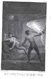 « Ilus après la fondation d’Ilium pria Jupiter de lui accorder un gage de sa protection, et le lendemain au lever de l'aurore il aperçut devant sa tente le Palladium que le père des dieux lui avait envoyé. C’était une statue haute de trois coudées, debout, et les pieds joints. De la main droite elle brandissait sa lance, et de la gauche elle tenait une quenouille et un fuseau. Voici l'histoire de ce Palladium. Minerve, dit-on, après sa naissance, fut confiée aux soins de Triton qui avait une fille nommée Pallas. Les deux compagnes se livraient aux exercices guerriers. Un jour elles eurent une querelle; Pallas allait frapper Minerve; Jupiter effrayé pour sa fille la couvrit de l’égide; Pallas lève sur le redoutable bouclier des regards pleins d'horreur, et Minerve profitant de son trouble la perce d'un coup mortel. Minerve cependant ressentit une vive douleur de sa mort; elle construisit à sa ressemblance une image de bois, et lui plaça sur la poitrine cette égide dont la vue lui avait coûté la vie; pour l'honorer, elle remit la statue à Jupiter. »