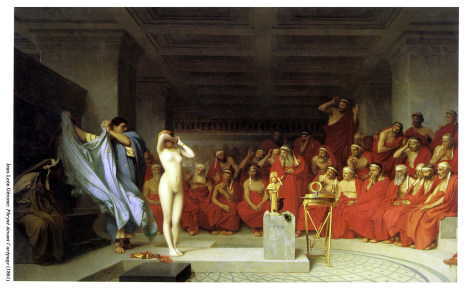 | 59. Parlons maintenant de Phryné de Thespies. Accusée de meurtre par Euthias, elle fut finalement acquittée. D'après Hermippos, la chose irrita tellement cet homme de loi qu'il ne plaida plus après cette affaire. Hypéride, l'avocat de Phryné, n'ayant pas réussi à émouvoir les juges et se doutant qu’ils allaient la condamner, décida de la mettre bien en vue, déchira sa tunique et dévoila sa poitrine à tout le monde. À ce moment, il tint des arguments si pathétiques que les juges, pris soudain d'une frayeur superstitieuse vis-à-vis d'une servante et prêtresse d'Aphrodite, se laissèrent gagner par la pitié et s’abstinrent de la mettre à la mort. Toutefois, après son acquittement, un décret fut voté, par lequel aucun défenseur ne saurait user de sensiblerie et qui, en outre, interdisait à tout personne accusée d’être regardée par ses juges. Il faut bien avouer que la splendeur de Phryné résidait dans ce qu’elle ne montrait pas. C’était impossible de la voir nue, car elle était toujours vêtue d'une tunique qui dissimulait les charmes de son corps ; de plus, elle n'allait jamais aux bains publics. Un jour, cependant, à la grande assemblée des Eleusines et aux fêtes de Poséidon, elle ôta son manteau devant tous les Grecs, laissa tomber ses longs cheveux et entra dans l'eau dans le plus simple appareil. Elle servit de modèle à Apelle quand il peignit son Aphrodite Anadyomène, mais aussi au sculpteur Praxitèle, son amant, qui sculpta l’Aphrodite de Cnide à son image ; et, sur le socle de son Éros, qui se trouve au pied de la scène du théâtre, il grava ces vers : « Praxitèle a fait cet Éros en le tirant de son propre cœur ; il m’a donné à Phryné : je suis moi-même mon propre salaire. Et si je jette des charmes, ce n'est plus avec mes flèches, mais avec mon regard de braise » Plus tard, Praxitèle demanda à Phryné de choisir une de ses statues, curieux de savoir si elle préférait, soit son Éros, soit son Satyre, celui qui se dressait dans la rue des Trépieds. Or elle prit l'Éros qu'elle offrit plus tard comme ex-voto à Thespies. Les amis de Phryné firent couler une statue d'or à son effigie qu'ils érigèrent ensuite à Delphes, au sommet d'une colonne en marbre du Pentélique, sculptée par Praxitèle. Quand le cynique Cratès découvrit l'œuvre, il s'écria que c'était un monument dressé au laisser-aller de la Grèce. Cette statue, que l'on peut encore voir entre celle d'Archidamos, roi de Lacédémone, et celle de Philippe, le fils d'Amyntas, porte la dédicace suivante : « Phryné, fille d'Épiclès de Thespies » ; c'est en tout cas ce que nous dit Alcétas dans le deuxième livre de son ouvrage consacré aux offrandes delphiques. |
