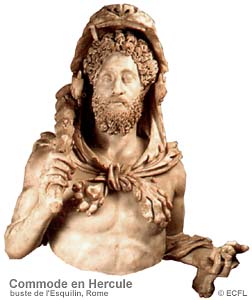 [46] Aussi cette calamité fut-elle regardée comme surnaturelle : chacun était persuadé que la volonté seule des dieux avait allumé et éteint cet incendie. Quelques-uns même voyaient dans la ruine du temple de la Paix le présage certain d'une guerre. Et l'événement (comme nous le verrons dans la suite) ne confirma que trop cette crainte. Les désastres continuels dont Rome était frappée avaient changé en haine l'amour que le peuple portait naguère à Commode. Tous rejetaient leurs malheurs communs sur les meurtres sans nombre et suries honteux excès dont l'empereur avait souillé sa vie. Ces excès n'étaient ignorés de personne, et lui-même ne songeait nullement à les cacher. Il ne craignait point de commettre en public des actions qu'il aurait dû rougir de commettre en secret ; et il en vint à un tel point de folie et d'audace, que, répudiant le nom glorieux de son père, il ne se fit plus appeler Commode, fils de Marc-Aurèle, mais Hercule, fils de Jupiter. On le vit quitter la toge romaine et les insignes de la dignité impériale, pour se couvrir d'une peau de lion et armer sa main d'une massue. Mais en même temps il portait une tunique de pourpre brochée d'or, et rappelant ainsi, dans le même costume, le luxe recherché d'une femme et la force d'un héros, il osait s'exposer aux justes risées de la multitude. Il changea aussi le nom des mois, et substitua à leurs anciennes dénominations ses propres surnoms, qui presque tous se rapportaient à Hercule, comme au plus brave des héros. Il se fit ériger des statues dans tous les quartiers de Rome; l'une d'elles, placée devant le sénat, avait un arc tendu à la main. Il voulait que ses images mêmes pussent inspirer la terreur. Mais, après sa mort, le sénat fit enlever ce marbre, et le remplaça par une statue de la liberté. [47] Commode ne gardait plus de mesure. Il fit annoncer des jeux où il promettait de tuer de sa propre main toutes les bêtes qu'on lâcherait dans l'arène, et de combattre ensuite corps à corps les plus habiles gladiateurs. Dès que cette nouvelle se répandit, il vint de toute l'Italie et des contrées voisines une grande affluence, attirée par l'espoir d'un spectacle qui jamais n'avait eu lieu, et dont l'on n'avait même point d'idée. Son adresse à lancer le javelot et à tirer de l'arc était devenue célèbre ; il avait la réputation de ne jamais manquer le but. Il avait pour maîtres des Parthes, très habiles archers, et des Maures qui excellaient au maniement du javelot ; mais l'élève triomphait de tous ses maîtres. Quand le jour des jeux fut arrivé, une foule immense remplit l'amphithéâtre. On avait élevé à l'entour une galerie du haut de laquelle Commode, sans s'exposer aux dangers d'un combat, lançait en sûreté des javelots sur les bêtes féroces du cirque, et faisait parade d'adresse, mais non de courage. Il tua d'abord des cerfs, des daims et des bêtes à corne de toute espèce, excepté des taureaux. Il descendit de sa galerie pour combattre ces animaux; il les poursuivait, et prévenait la vitesse de leur fuite par la rapidité et la sûreté de ses coups. II tua ensuite, du haut de la galerie, qu'il parcourait en lançant des traits, des lions, des panthères et des bêtes fauves de toute espèce. Jamais il ne visa deux fois le même animal, et tous ses coups étaient mortels. A peine la bête s'était-elle élancée dans l'arène, qu'elle tombait frappée au front et au coeur. Il ne dirigeait ses traits que vers ces parties de leur corps; aussi le javelot ne frappait jamais ailleurs, et l'animal recevait la mort avec la blessure. On, rassemblait pour lui des animaux de toutes les parties du monde ; et nous vîmes alors pour la première fois en réalité des monstres que nous n'avions encore vus qu'en peinture. De l'Inde, de l'Éthiopie, du midi et du septentrion, on lui amenait des animaux jusqu'alors inconnus dans nos climats; Commode les donnait en spectacle aux Romains, et les faisait tomber sous ses coups. On ne se lassait point d'admirer sa prodigieuse adresse. Quelquefois il se servait de flèches années d'un fer en croissant, contre des autruches de Mauritanie. Ces oiseaux, sans quitter la terre, courent avec la plus grande rapidité, poussés par leurs ailes comme par des voiles. Commode les visait avec tant d'adresse et de force qu'il leur coupait le cou, et dans cet état, l'impétuosité de leur élan les entraînait quelque temps encore. Un jour, une panthère s'était jetée avec la rapidité du vent sur un homme descendu dans le cirque; déjà elle avait saisi le malheureux et allait le déchirer. Commode lance son javelot, abat la panthère, sauve l'homme, et par un heureux coup prévient la morsure des dents acérées du monstre. Un autre jour, on fit sortir de leurs loges cent lions, qu'il tua les uns après les autres avec un pareil nombre de javelots. On les laissa longtemps étendus sur l'arène, chacun les compta à loisir; tous les javelots avaient porté. [48] Jusqu'alors, quoique cette conduite de l'empereur fût contraire à la dignité d'un prince, elle ne laissait point de plaire au peuple, parce qu'elle prouvait de la force et de l'adresse. Mais lorsque Commode vint à se montrer nu dans l'amphithéâtre et à combattre, armé de l'épée, des gladiateurs, ce fut pour le peuple un triste et douloureux spectacle, de voir un empereur romain, d'une si auguste origine, et dont le père et les ancêtres avaient obtenu tant de triomphes, au lieu de combattre les barbares, au lieu de prendre des armes vraiment dignes d'un souverain de Rome, déshonorer la majesté de l'empire par le honteux appareil d'un gladiateur. Dans ces luttes infâmes, Commode n'avait point de peine à être vainqueur. Aussi se contentait-il de blesser ses adversaires, qui n'avaient garde de lui disputer la victoire, et qui dans leur antagoniste reconnaissaient toujours l'empereur. Son extravagance franchit bientôt toutes les limites : il voulut quit