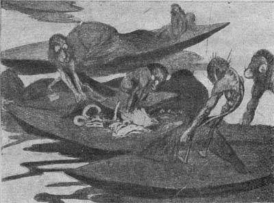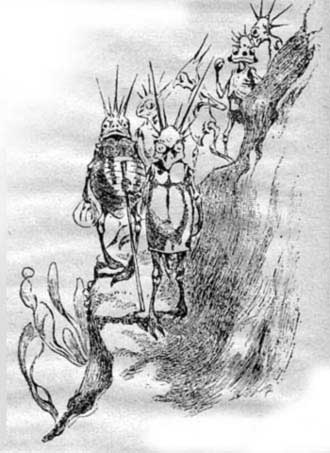 (28) Γαστήρ, ventre ; κνήμη, jambe, cuisse. [23] ἐπειδὰν δὲ γηράσηι ὁ ἄνθρωπος, οὐκ ἀποθνήισκει, ἀλλ᾽ ὥσπερ καπνὸς διαλυόμενος ἀὴρ γίνεται. τροφὴ δὲ πᾶσιν ἡ αὐτή· ἐπειδὰν γὰρ πῦρ ἀνακαύσωσιν, βατράχους ὀπτῶσιν ἐπὶ τῶν ἀνθράκων· πολλοὶ δὲ παρ᾽ αὐτοῖς εἰσιν ἐν τῶι ἀέρι πετόμενοι· ὀπτωμένων δὲ περικαθεσθέντες ὥσπερ δὴ περὶ τράπεζαν κάπτουσιν τὸν ἀναθυμιώμενον καπνὸν καὶ εὐωχοῦνται. σίτωι μὲν δὴ τρέφονται τοιούτωι· ποτὸν δὲ αὐτοῖς ἐστιν ἀὴρ ἀποθλιβόμενος εἰς κύλικα καὶ ὑγρὸν ἀνιεὶς ὥσπερ δρόσον. οὐ μὴν ἀπουροῦσίν γε καὶ ἀφοδεύουσιν, ἀλλ᾽ οὐδὲ τέτρηνται ἧιπερ ἡμεῖς, οὐδὲ τὴν συνουσίαν οἱ παῖδες ἐν ταῖς ἕδραις παρέχουσιν, ἀλλ᾽ ἐν ταῖς ἰγνύσιν ὑπὲρ τὴν γαστροκνημίαν· ἐκεῖ γάρ εἰσι τετρημένοι. 23. Quand un homme est parvenu à une extrême vieillesse, il ne meurt pas, mais il s'évapore en fumée et se dissout dans les airs. Ils se nourrissent tous de la même manière. Ils allument du feu et font rôtir sur le charbons des grenouilles volantes, qui sont chez eux en grande quantité ; puis ils s'asseyent autour de ce feu, comme d'une table, et se régalent en avalant la fumée qui s'exhale du rôti. Tel est leur plat solide. Leur boisson est de l'air pressé dans un vase, où il se résout en un liquide semblable à de la rosée. Ils ne rendent ni urine, ni excréments, n'ayant pas, comme nous, les conduits nécessaires. Ils ne peuvent pas non plus avoir par cette voie de commerce avec des mignons, mais par les jarrets, où s'ouvre leur gastrocnémie. C'est une beauté chez eux que d'être chauve et complément dégarni de cheveux ; ils ont les chevelures en horreur. Dans les comètes, au contraire, les cheveux sont réputés beaux, au moins d'après ce que nous en dirent quelques voyageurs. Leur barbe croît un peu au-dessus du genou ; leurs pieds sont dépourvus d'ongles, et tous n'y ont qu'un seul doigt. Il leur pousse au-dessus des fesses une espèce de gros chou, en manière de queue, toujours vert, et ne se brisant jamais, lors même que l'individu tombe sur le dos. [24] ἀπομύττονται δὲ μέλι δριμύτατον· κἀπειδὰν ἢ πονῶσιν ἢ γυμνάζωνται, γάλακτι πᾶν τὸ σῶμα ἱδροῦσιν, ὥστε καὶ τυροὺς ἀπ᾽ αὐτοῦ πήγνυνται, ὀλίγον τοῦ μέλιτος ἐπιστάξαντες· ἔλαιον δὲ ποιοῦνται ἀπὸ τῶν κρομμύων πάνυ λιπαρόν τε καὶ εὐῶδες ὥσπερ μύρον. ἀμπέλους δὲ πολλὰς ἔχουσιν ὑδροφόρους· αἱ γὰρ ῥᾶγες τῶν βοτρύων εἰσὶν ὥσπερ χάλαζα, καί, ἐμοὶ δοκεῖν, ἐπειδὰν ἐμπεσὼν ἄνεμος διασείσηι τὰς ἀμπέλους ἐκείνας, τότε πρὸς ἡμᾶς καταπίπτει ἡ χάλαζα διαρραγέντων τῶν βοτρύων. τῆι μέντοι γαστρὶ ὅσα πήραι χρῶνται τιθέντες ἐν αὐτῆι ὅσων δέονται· ἀνοικτὴ γὰρ αὐτοῖς αὕτη καὶ πάλιν κλειστή ἐστιν· ἐντέρων δὲ οὐδὲν ὑπάρχειν αὐτῆι φαίνεται, ἢ τοῦτο μόνον, ὅτι δασεῖα πᾶσα ἔντοσθε καὶ λάσιός ἐστιν, ὥστε καὶ τὰ νεογνά, ἐπειδὰν ῥιγώσηι, ἐς ταύτην ὑποδύεται. [25] Ἐσθὴς δὲ τοῖς μὲν πλουσίοις ὑαλίνη μαλθακή, τοῖς πένησι δὲ χαλκῆ ὑφαντή· πολύχαλκα γὰρ τὰ ἐκεῖ χωρία, καὶ ἐργάζονται τὸν χαλκὸν ὕδατι ὑποβρέξαντες ὥσπερ τὰ ἔρια. περὶ μέντοι τῶν ὀφθαλμῶν, οἵους ἔχουσιν, ὀκνῶ μὲν εἰπεῖν, μή τίς με νομίσηι ψεύδεσθαι διὰ τὸ ἄπιστον τοῦ λόγου. ὅμως δὲ καὶ τοῦτο ἐρῶ· τοὺς ὀφθαλμοὺς περιαιρετοὺς ἔχουσι, καὶ ὁ βουλόμενος ἐξελὼν τοὺς αὑτοῦ φυλάττει ἔστ᾽ ἂν δεηθῆι ἰδεῖν· οὕτω δὲ ἐνθέμενος ὁρᾶι· καὶ πολλοὶ τοὺς σφετέρους ἀπολέσαντες παρ᾽ ἄλλων χρησάμενοι ὁρῶσιν. εἰσὶ δ᾽ οἳ καὶ πολλοὺς ἀποθέτους ἔχουσιν, οἱ πλούσιοι. τὰ ὦτα δὲ πλατάνων φύλλα ἐστὶν αὐτοῖς πλήν γε τοῖς ἀπὸ τῶν βαλάνων· ἐκεῖνοι γὰρ μόνοι ξύλινα ἔχουσιν. 25. L'habillement des riches est de verre, étoffe moelleuse, celui des pauvres est un tissu de cuivre ; le pays produit en grande quantité ce métal, qu'ils travaillent comme de la laine, après l'avoir mouillé. Quant à leurs yeux, en vérité je n'ose dire comment ils sont faits, de peur qu'on ne me prenne pour un menteur, tant la chose est incroyable. Je me hasarderai pourtant à dire que leurs yeux sont amovibles : ils les ôtent quand ils veulent et les mettent de côté, jusqu'à ce qu'ils aient envie de voir ; alors, ils les remettent en place pour s'en servir, et, si quelques-uns d'entre eux viennent à 