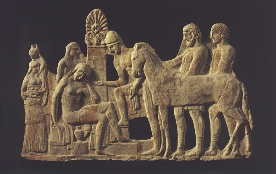 Stasimon 1 : le chœur évoque les danses des Néréides et décrit le bouclier d'Achille.
