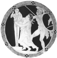 Épisode 4 : lamentations de Teucros, demi-frère d'Ajax. Il s'oppose à Ménélas venu interdire une sépulture à Ajax.